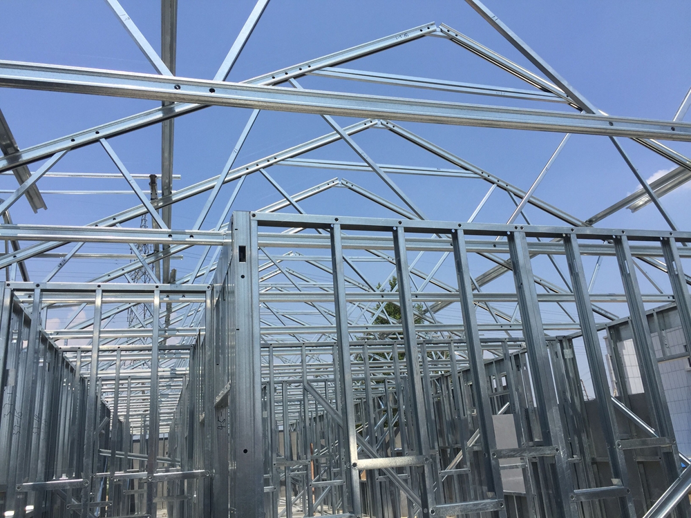 هيكل فولاذي خفيف للهيكل السكني من جميع مكونات نظام مكونات الفولاذ الرقيقة المشكلة على البارد، الفولاذ المقوى بتصنيع صفائح مجلفنة مدلفنة على البارد عالية القوة مضادة للتآكل، يتجنب بشكل فعال تآكل اللوحة في عملية البناء والاستخدام، ويزيد من عمر خدمة مكونات الفولاذ الخفيف